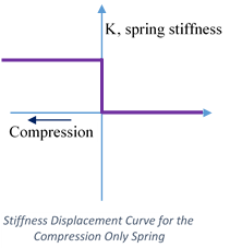 Compression only spring elements are uniaxial nonlinear spring elements. These elements have no stiffness when subjected tensile loading/displacements. Under tensile loading these elements will create a gap.