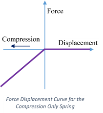 Compression only spring elements are uniaxial nonlinear spring elements. These elements have no stiffness when subjected tensile loading/displacements. Under tensile loading these elements will create a gap.