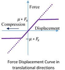 Friction elements are three direction translational spring elements consisting of one axial and two translational directions. In axial direction, these elements works as Gap elements. In translational direction these elements behaves as elastic plastic elements. Plastic limit is calculated using coulomb friction law